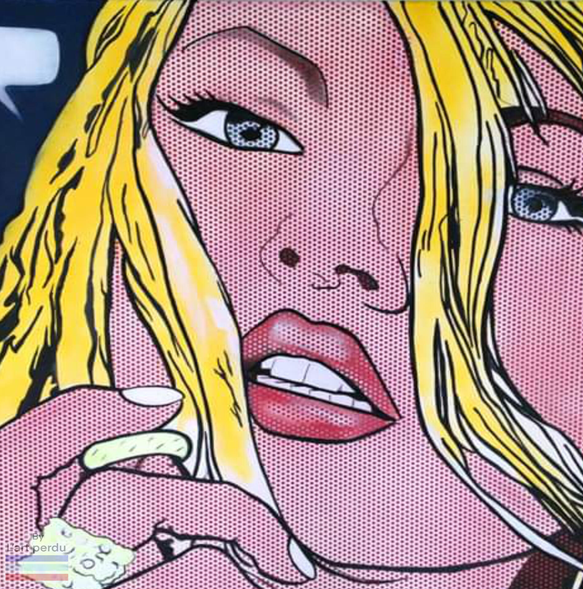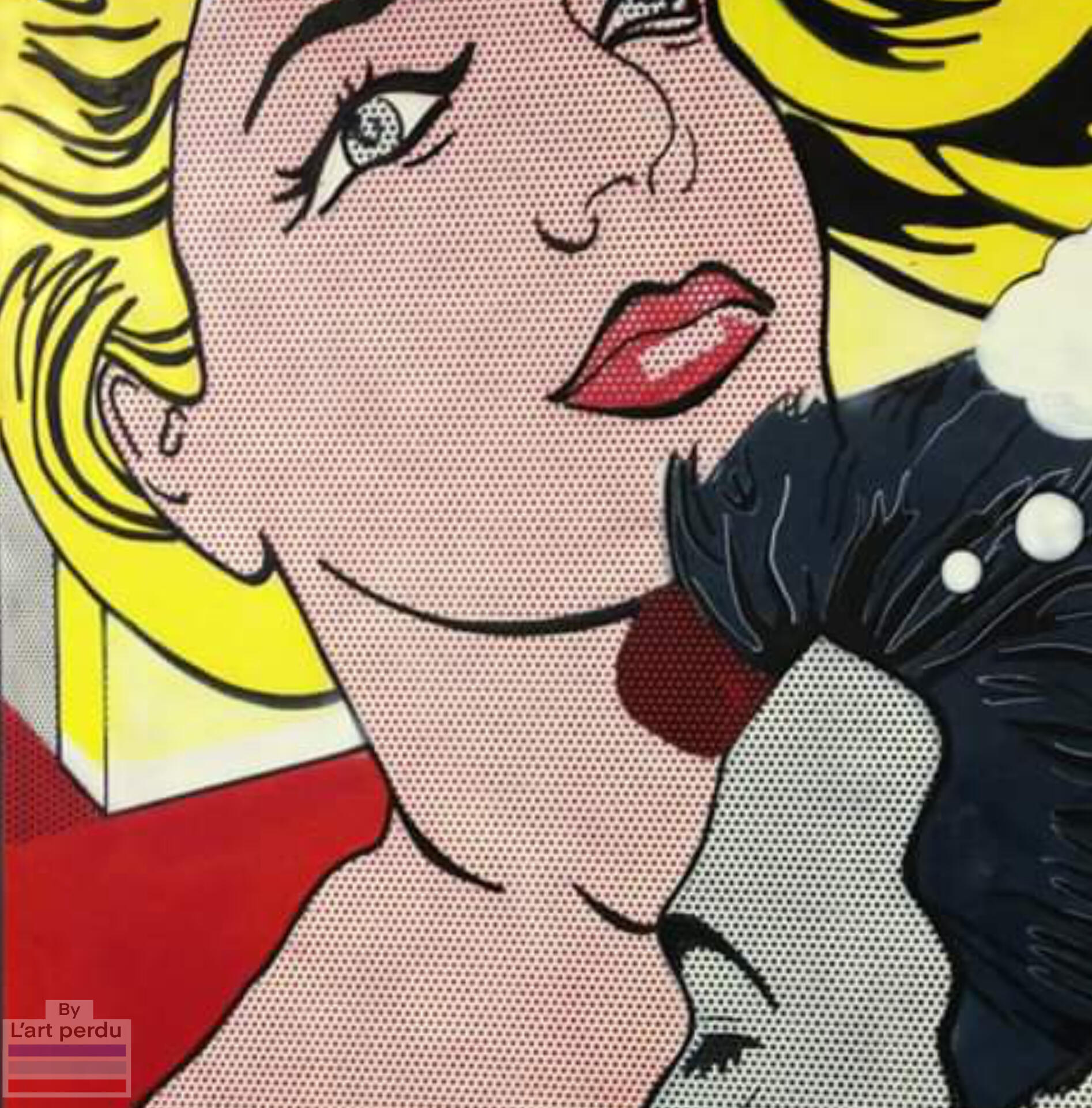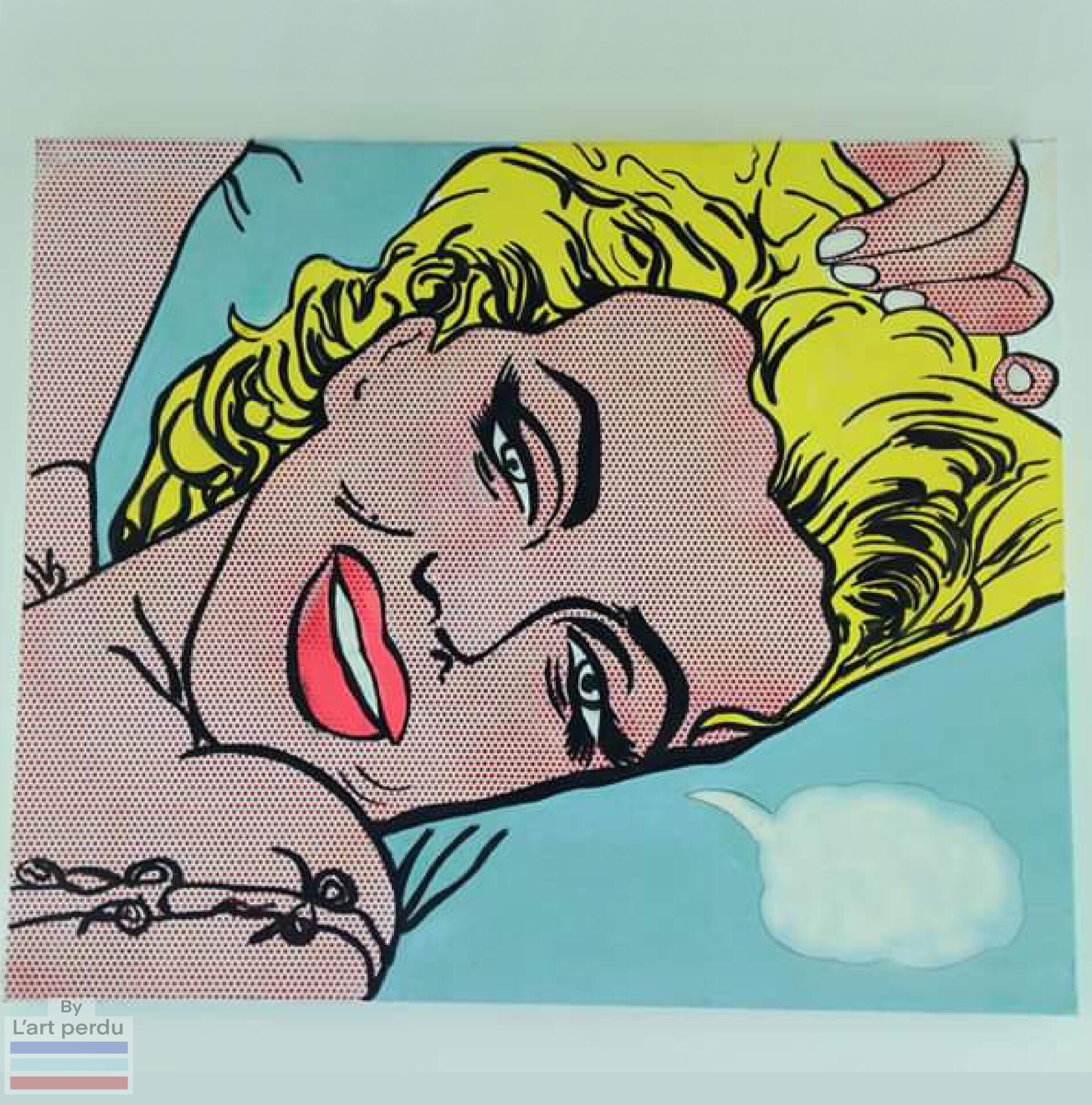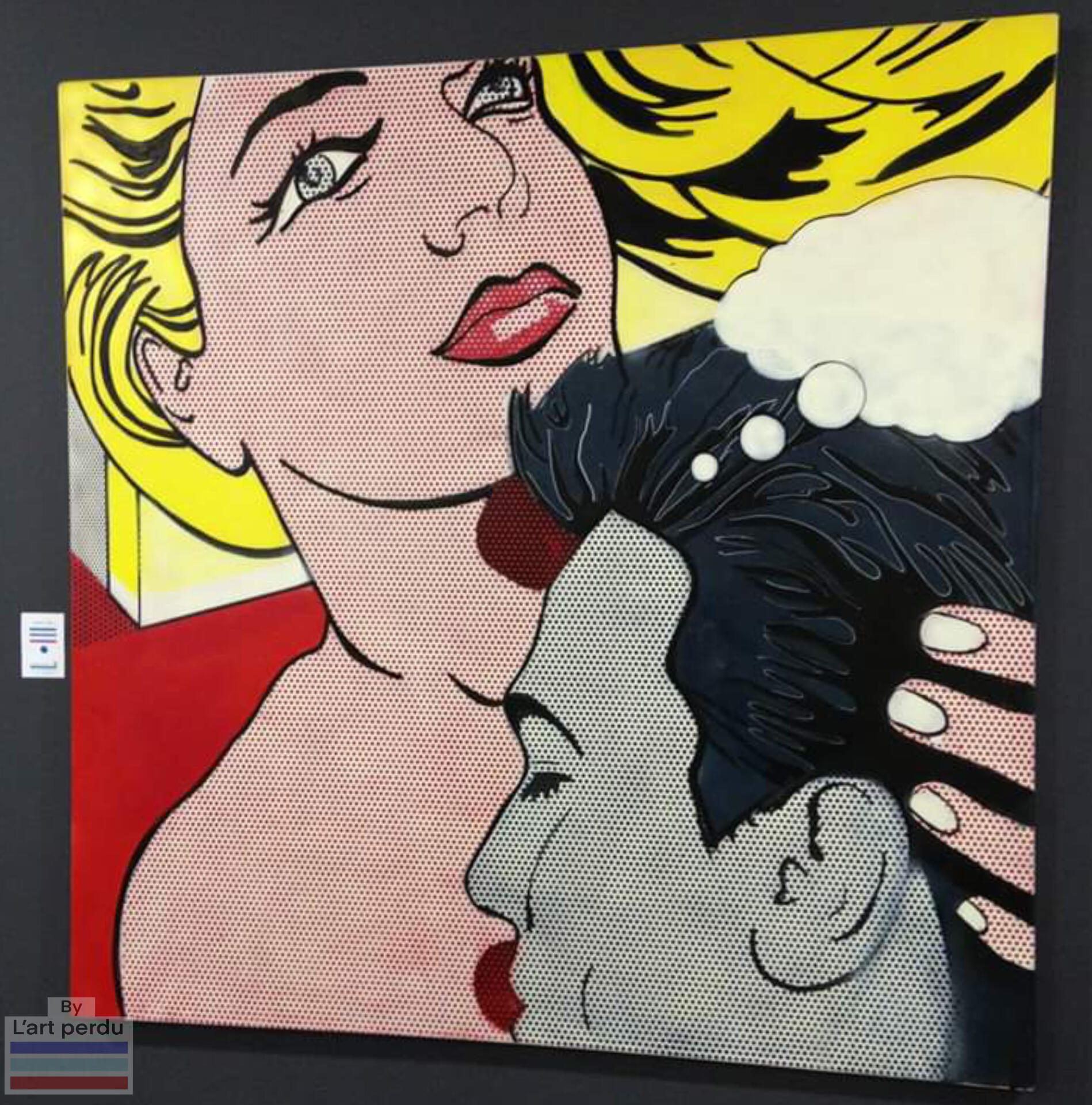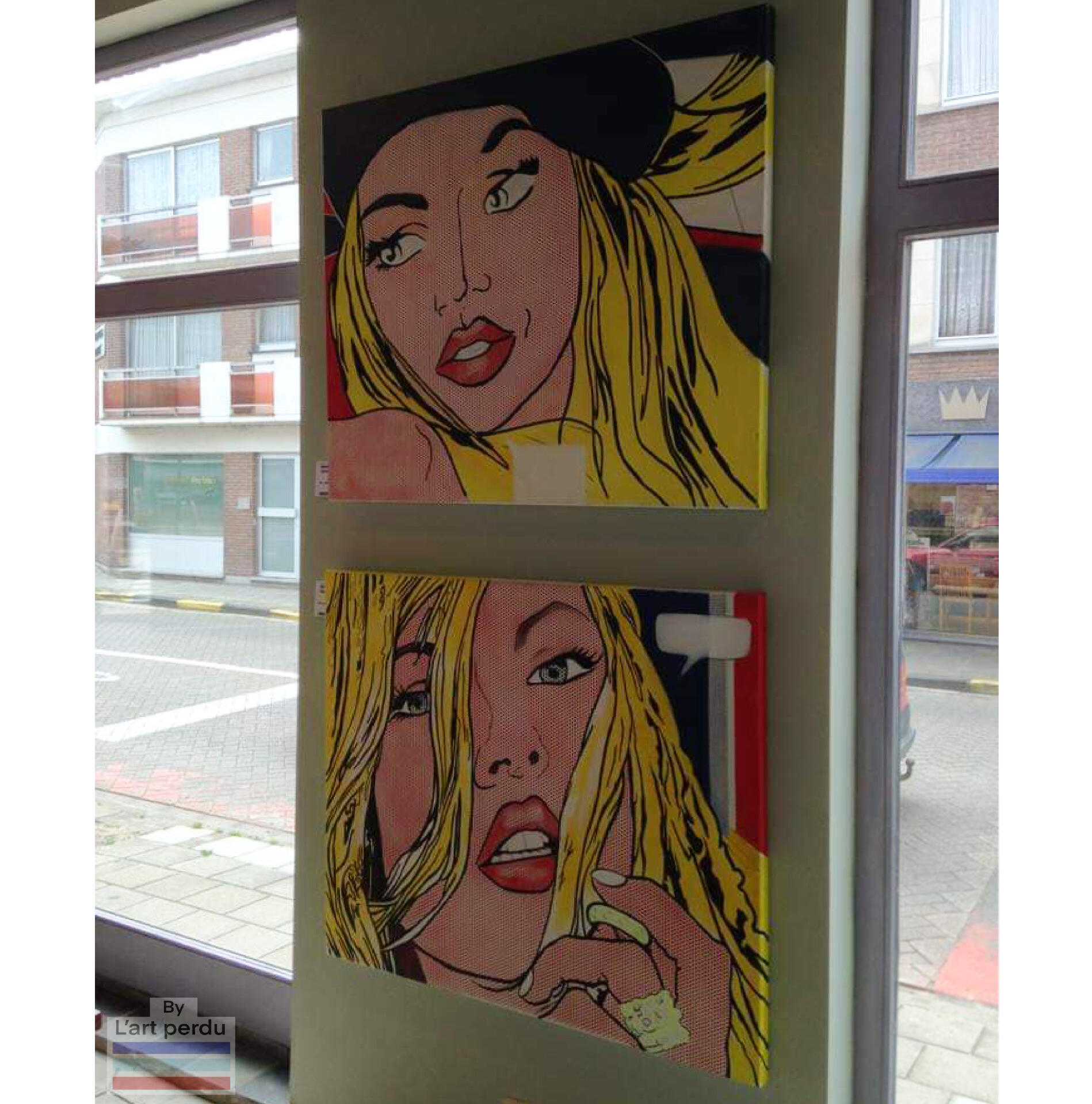 Paintings can be ordered with a custom text (if there’s a blanc speech bubble on the painting)
