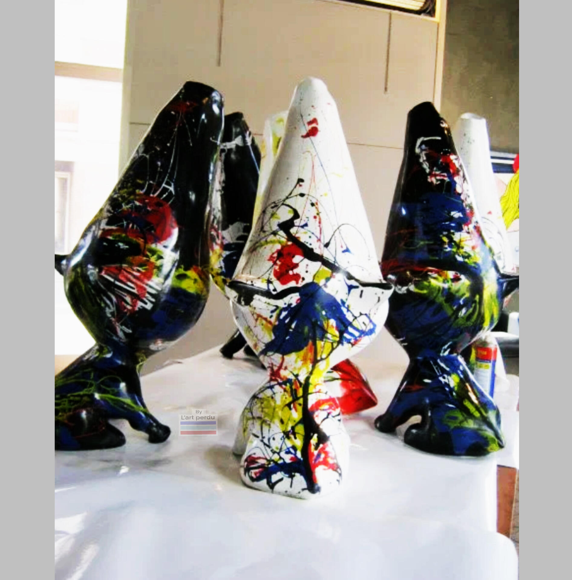 From 3D paintings, portraits, pop art, modern art, ... to sculptures made of recycled materials like functioning lamps in the shape of animals, sculptures for outside and inside up to 2.5m high, rough upcycled sculptures with little details and a fine finish of real-life dogs, wild boar, horses, ...